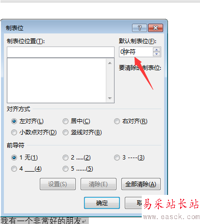 5、編輯為0字符。接著可以看到這的制表位是2字符,這就是為什么會有空格的原因了,將這的字符改為0字符,這樣就可以將空格取消掉了。