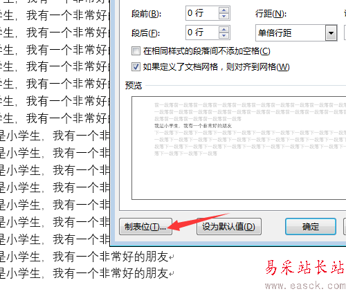 4、選擇制表位。點擊后會出現一個新的頁面,這時候就可以在這個頁面里選擇右下角的制表位,通過設置這的參數來將空格去除掉。