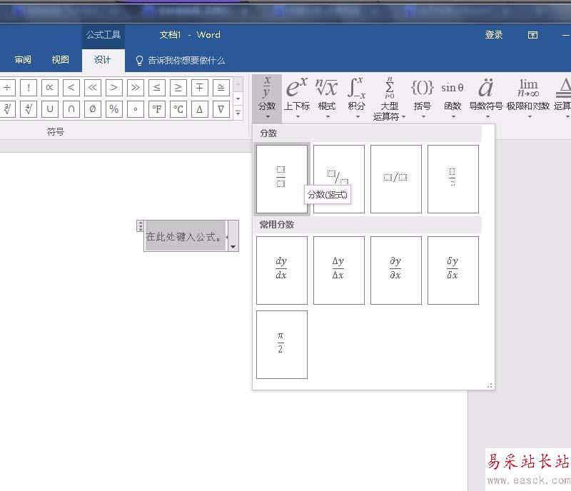 3、點擊【分數】下拉列表,此時我們可以看到有很多的分數模板,一般我們使用的是第一個模板,點擊第一個模板。