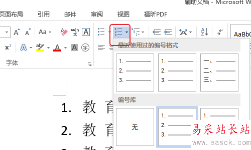 2、如下圖,找到編號選項的設置窗口,打開編號設置菜單