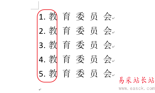 1、如下圖的一段文字編號,你會發現編號與文字之間空著很大的距離,該怎樣除去這個空格呢?