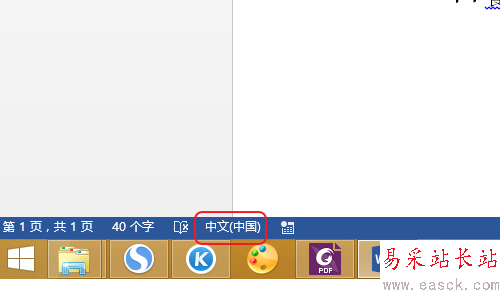 2、在Word文檔的下方狀態欄里可以看到如下圖所示的”中文(中國)“選項,單擊該按鈕打開自檢功能設置窗口