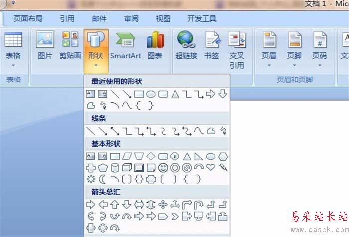11、之后我們在次點擊“插入”→“形狀”,選中一種箭頭,我們點擊箭頭,調整箭頭的大小和方向,還可以設置顏色,之后就像整個word的樹狀圖,設置完成。