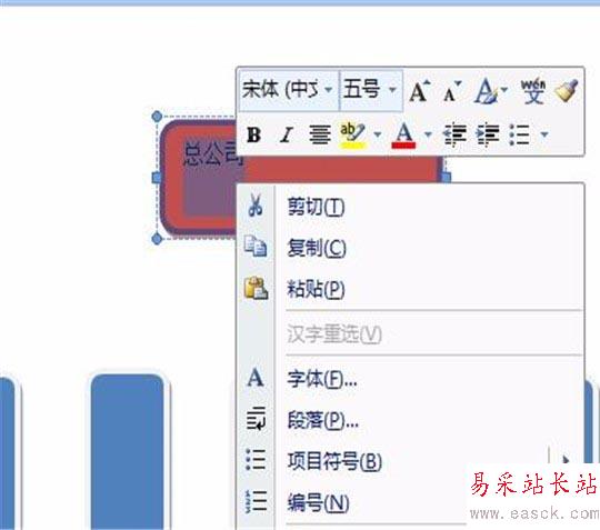 9、之后將形狀中的文字選中,鼠標右鍵點擊,在彈出的對話框中,選擇字號、橫豎、顏色即可設置成自己需要的樣式。