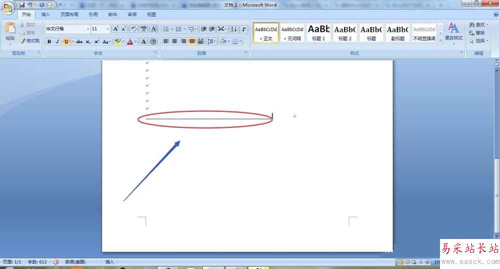 ③按照以上的方法,我們可以看到在此空白文檔上有了一條長的橫線,也可以叫下劃線