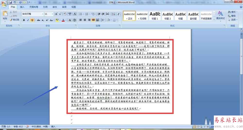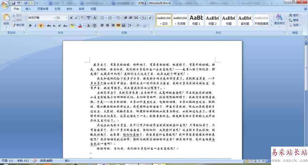 ①我們還是通過word2007建立一張帶有文字的文檔,如圖。