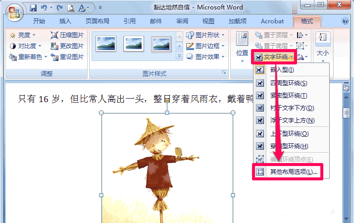 4、在文字環(huán)繞中還可以選擇其它布局選項(xiàng)。