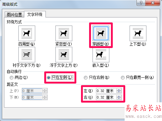 5、在高級(jí)版式中同樣可以設(shè)置word圖片環(huán)繞方式,并且可以進(jìn)行詳細(xì)設(shè)置。