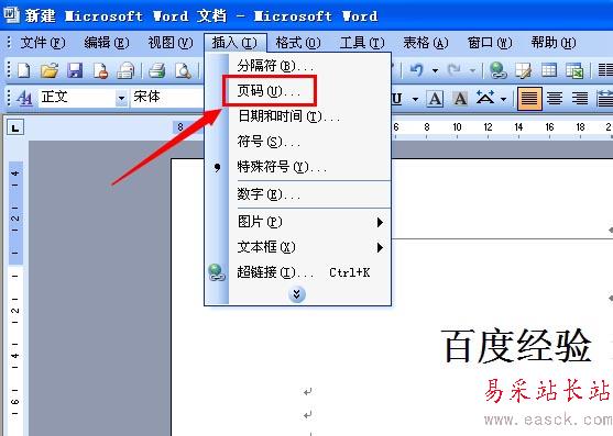 2、一次點擊文檔上方的“插入”——“頁碼”