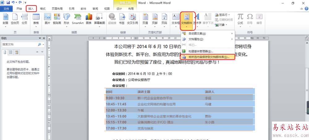 將Word表格保存到部件庫是比較常見的題目類型,其實只需要三部即可。