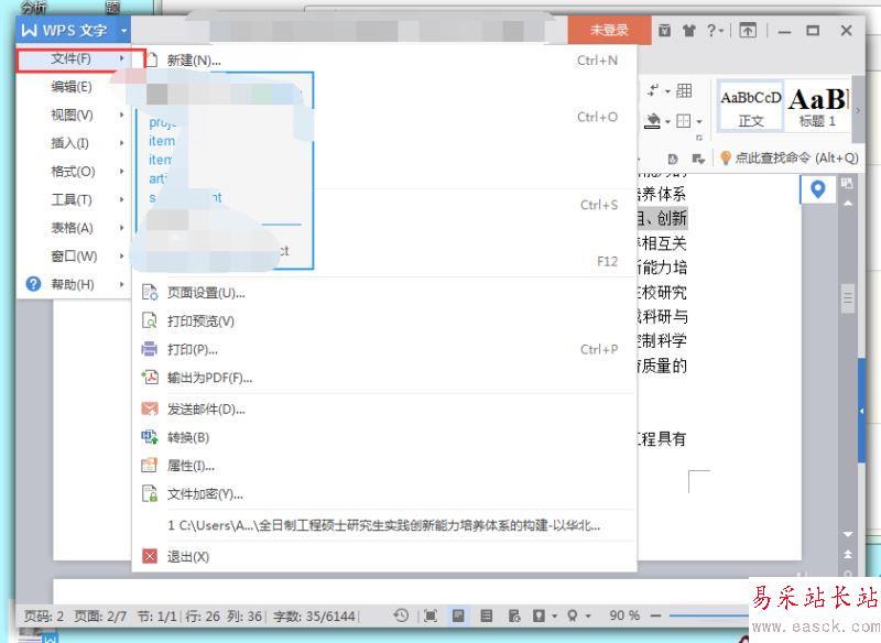 2、點擊文檔,在下拉菜單中找到“打印”,并點擊;
