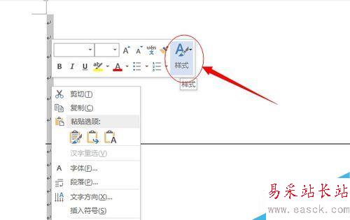 以word2013為例,ctrl+a全選,然后右鍵,選擇樣式。