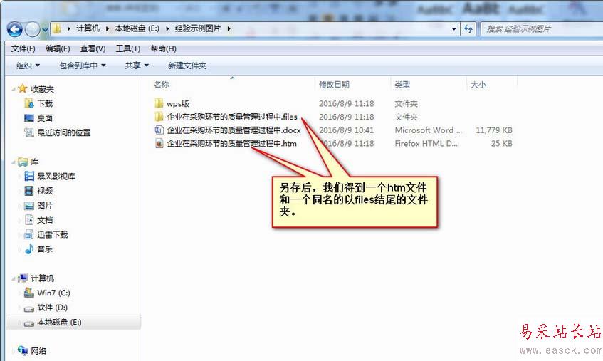 3、我們看到另存結果與WPS一樣,也是一個網頁文件和一個同名的文件夾。