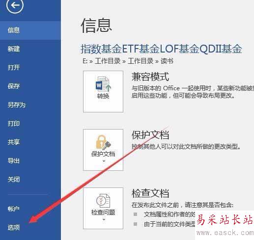 2、在打開的文件下拉菜單中點(diǎn)擊“選項(xiàng)”菜單項(xiàng)