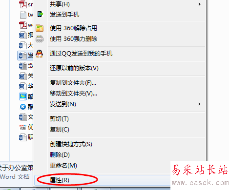 1、首先查找下文檔在電腦磁盤的位置,找到后在WORD文檔上單擊鼠標右鍵,選擇屬性。