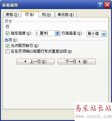 雙擊表格左上角的十字,設置表格的固定行寬,我們設置為1cm(或者1.2cm)