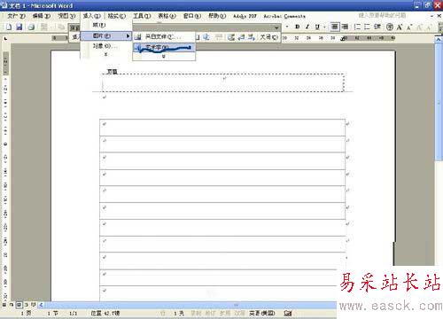 我們點擊 視圖 插入一個頁眉,在頁眉編輯框里我們可以插入自己做好的圖片標題,也可以直接在插入 圖片 里面找到藝術字選項。插入藝術字。樣式是自己選擇合適的。