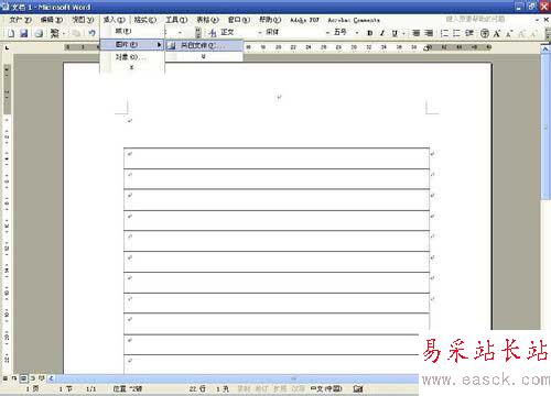 第一步點擊 表格 插入一個表格,因為我們常用的行間隔是1cm。所以我推薦a4紙是20行或者22行左右(不過隨你喜歡),只有一列。