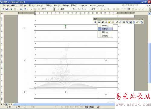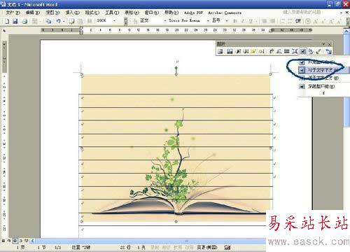 我們把背景圖片設置成襯于文字下方,由于是襯于下方,所以最好是白底的圖片。