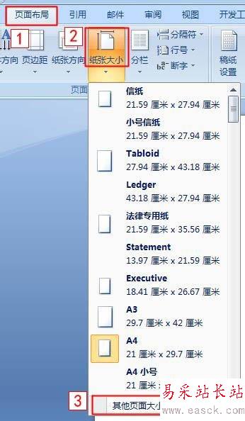 1、預定義紙張,【頁面布局】-【紙張大小】-【本身就定義好的紙張】(如A4、A3等)。
