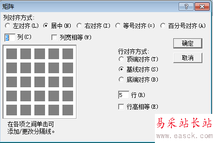 6、我們還可以修改矩陣的尺寸等方面,此處不在贅述,修改好后,我們關(guān)閉公式編輯器,此時(shí)矩陣就出現(xiàn)我們的光標(biāo)位置了。