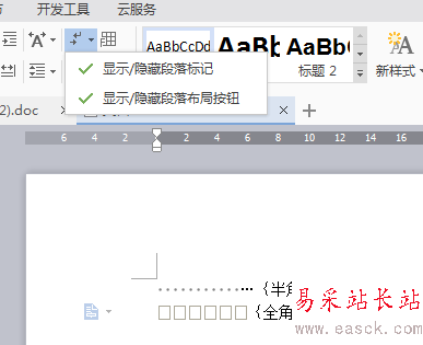 4、是不是看到兩個選項“顯示/隱藏段落標記”和“顯示/隱藏段落布局按鈕”兩個選項。