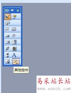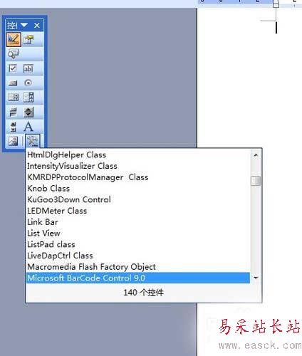 2、在“控件工具欄”中我們 找到右下角的“其它控件”按鈕,如下圖1,單擊“其它控件”按鈕,在下拉列表中找到“Microsoft Barcode 控件 9.0“;