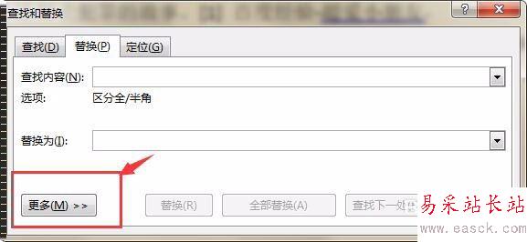 1、打開word文檔,按【Ctrl】+【H】快捷鍵(即替換命令),調出替換窗口。點擊左下角的【更多】按鈕。
