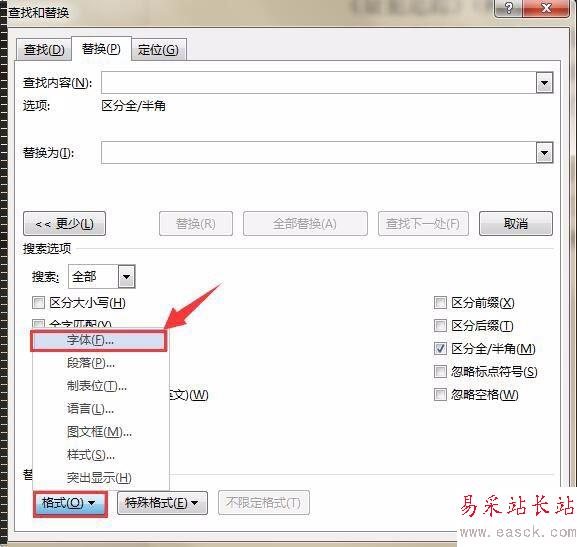 2、在彈出的高級模式里,選擇左下角的【格式】-【字體】