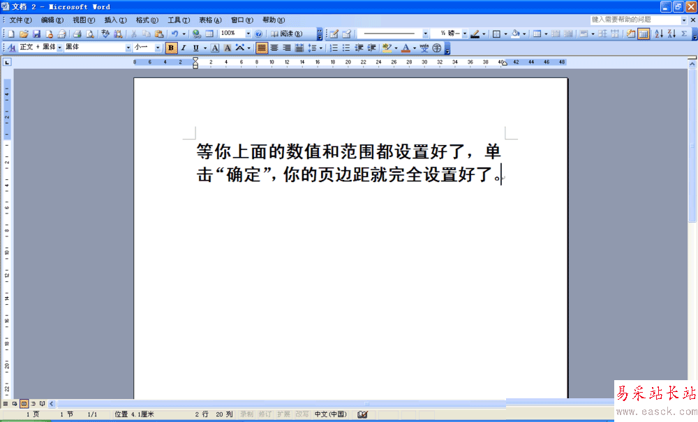 6、等你上面的數(shù)值和范圍都設(shè)置好了,單擊“確定”,你的頁邊距就完全設(shè)置好了。