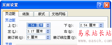 3、打開頁面設(shè)置對(duì)話框后,會(huì)看到電腦自動(dòng)設(shè)置的上、下、左右數(shù)值。