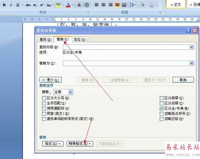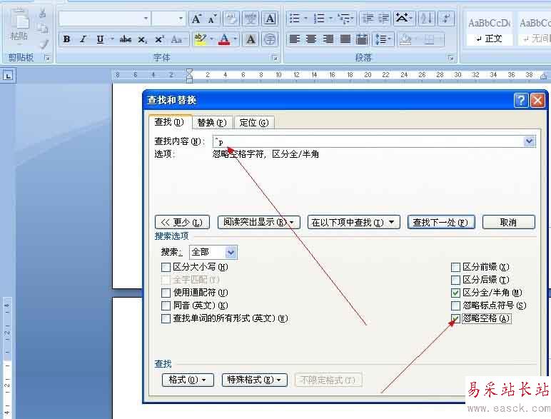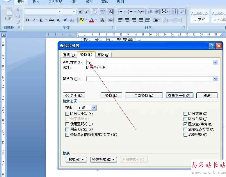 這時在查找內容欄里會出現一個“^p”,