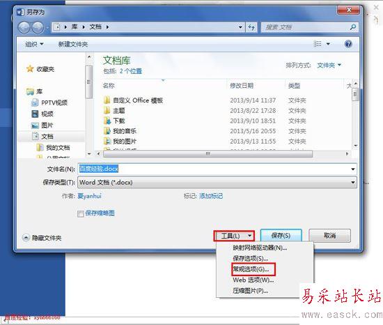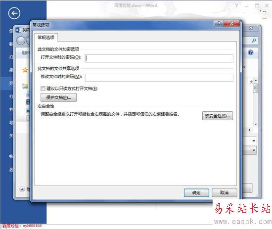 5、常規(guī)選項打開后如下圖所示,這里我們可以設(shè)置打開文件時的密碼,下面的“修改文件時的密碼”就是我們今天要使用的功能