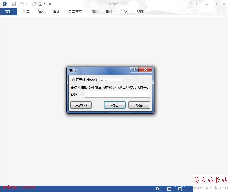 9、在我們打開上面我們設(shè)置的"修改Word文檔密碼"的文檔時,就會彈出下面的提示框,要求我們輸入密碼,當別人不知道密碼的時候就只能已只讀的方式打開這個文件,不能修改