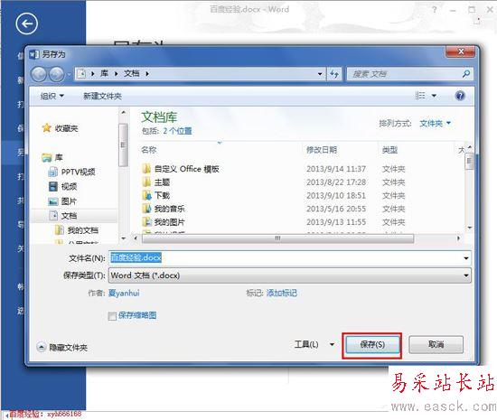 3、在打開的“另存為”對話框中,輸入我們要不的文件名,保存類型默認就可以