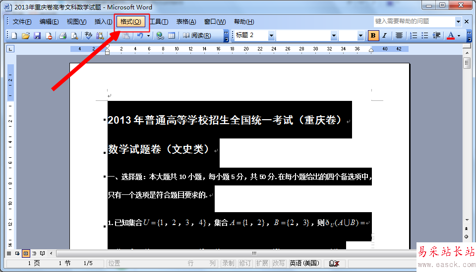 2、選中后,點擊右上角的“格式”選項(如下圖)