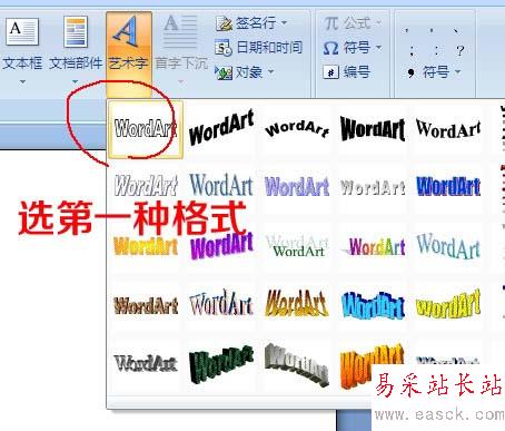 步驟和word2003大同小異,打開word2007,插入,藝術字,選第一個格式,編輯文字