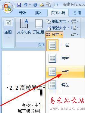 3、在打開的芬蘭的下拉菜單中,我們選擇三欄