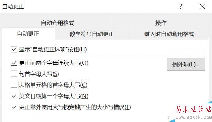 在彈出界面中,取消“句首字母大寫”以及“表格單元格的首字母大寫”勾選,這樣一來輸入英文單詞的時(shí)候,就不會(huì)出現(xiàn)首字母大寫的情況了。