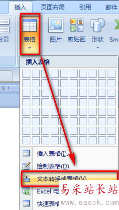 2、點(diǎn)擊【插入】-【表格】-【文字轉(zhuǎn)換成表格】。