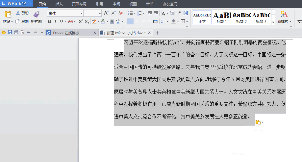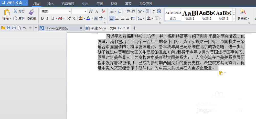 2、把段落復制上去,然后選中我們需要調整行距的內容