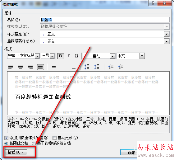 7、按照原來的方式去掉復選框即可。這樣,就可以保留【標題2】所有的屬性,只是不要標題前的小黑點了。