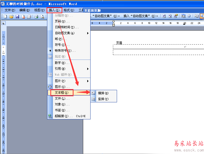 4、然后點擊“插入”,點擊“文本框”,選擇你需要添加的水印性質是橫排還是豎排