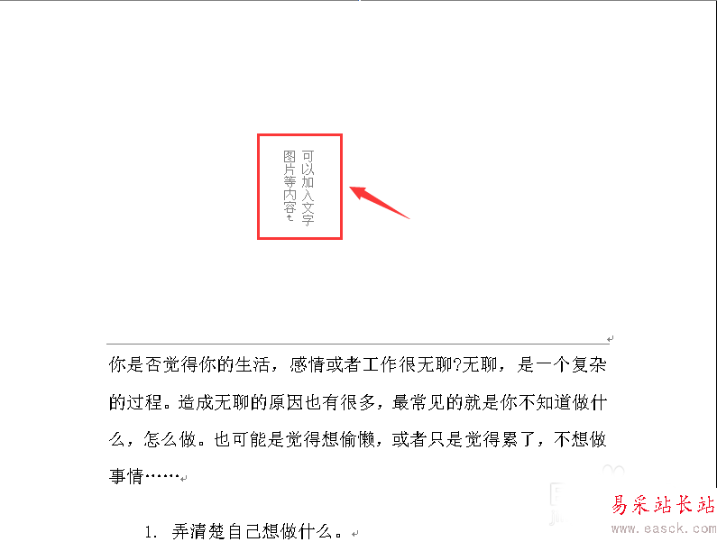 5、然后在“方框中可以加入文字或者圖片等內容”