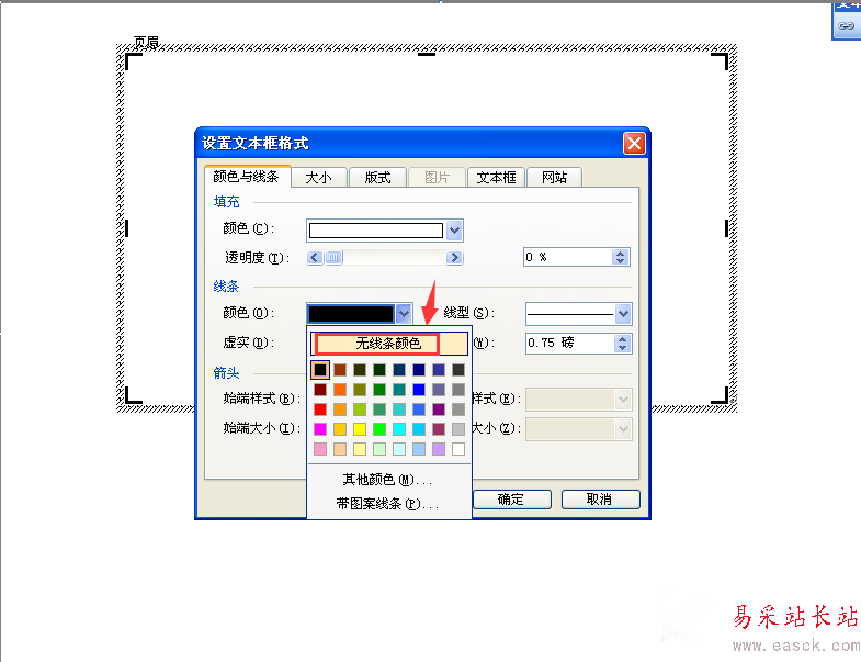 7、再選擇“線條中的顏色”,選擇“無線條顏色”,點擊“確定”