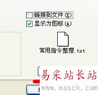 5、插入之后可以進行圖標的更改,一般你插入的文件是什么類型的,對應的圖標就是什么樣的,譬如你插入word,我插入的是txt,所以圖標是一塊白色的。