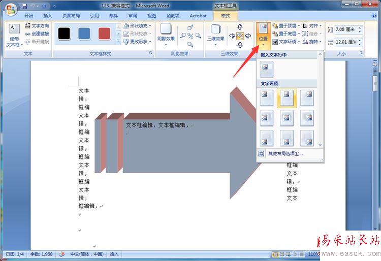 9、文字與文本框排版:在這我們可以將文本框當做圖片類型一樣,排版方法相同,可以嵌入,也可以圍繞文字。如圖所示