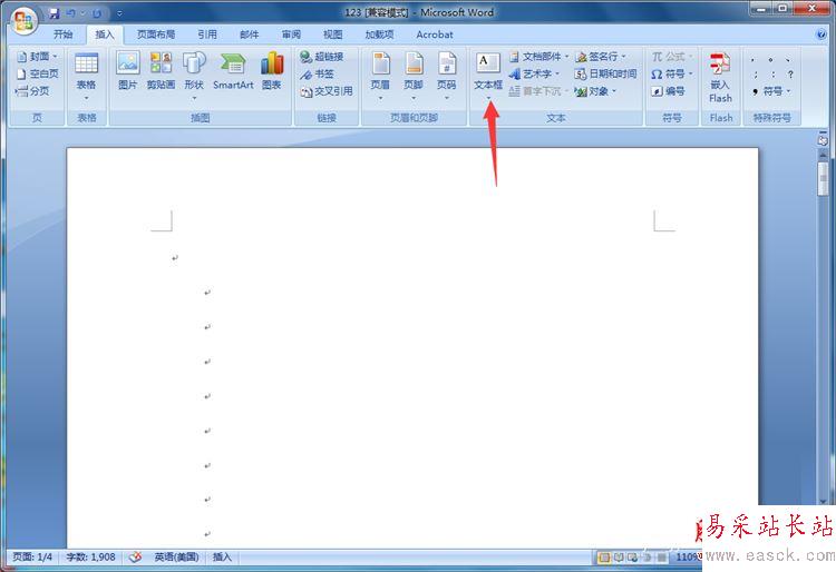 1、打開word2007,點擊菜單插入-文本框,如圖所示,選擇一款文本框模板,在這選擇簡單文本框。