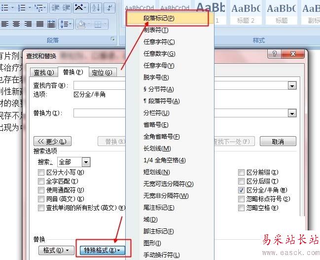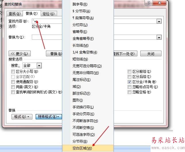 一樣打開替換窗口。找到特殊格式中的空白區域