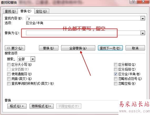 5、下面的替換文字什么都不需要寫。直接留空就可以了。